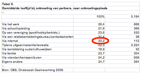 Steeds vaker vinden mensen een partner via internet, meldt het CBS vandaag (gezien via nu.nl). Hoe schokkend is dat?