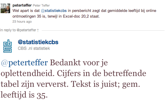 Onduidelijk is verder de gemiddelde leeftijd van de via-internet-ontmoeters. Het persbericht, en het ANP op nu.nl, meldt: