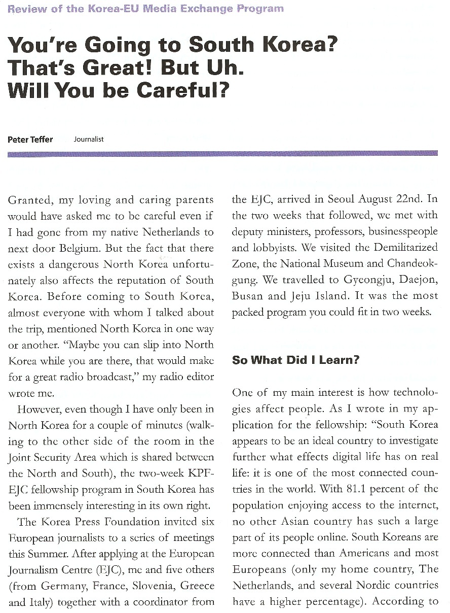 In de herfst van vorig jaar ben ik op uitnodiging van de Korea Press Foundation naar Zuid-Korea geweest. In het jongste nummer van de Korea Journalism Review heb ik een artikel geschreven over mijn ervaringen aldaar.