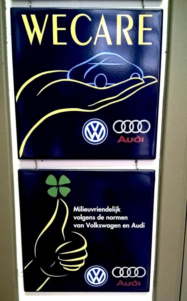 Afgelopen weekend zag ik op een tentoonstelling deze reclame van Volkswagen en Audi, die in het licht van Dieselgate toch een enigszins andere associatie oproept dan destijds waarschijnlijk de bedoeling was. Vooral de onderste slogan is opmerkelijk, wanneer je bedenkt dat volgens de normen van de EU miljoenen dieselauto’s helemaal niet milieuvriendelijk bleken te zijn.