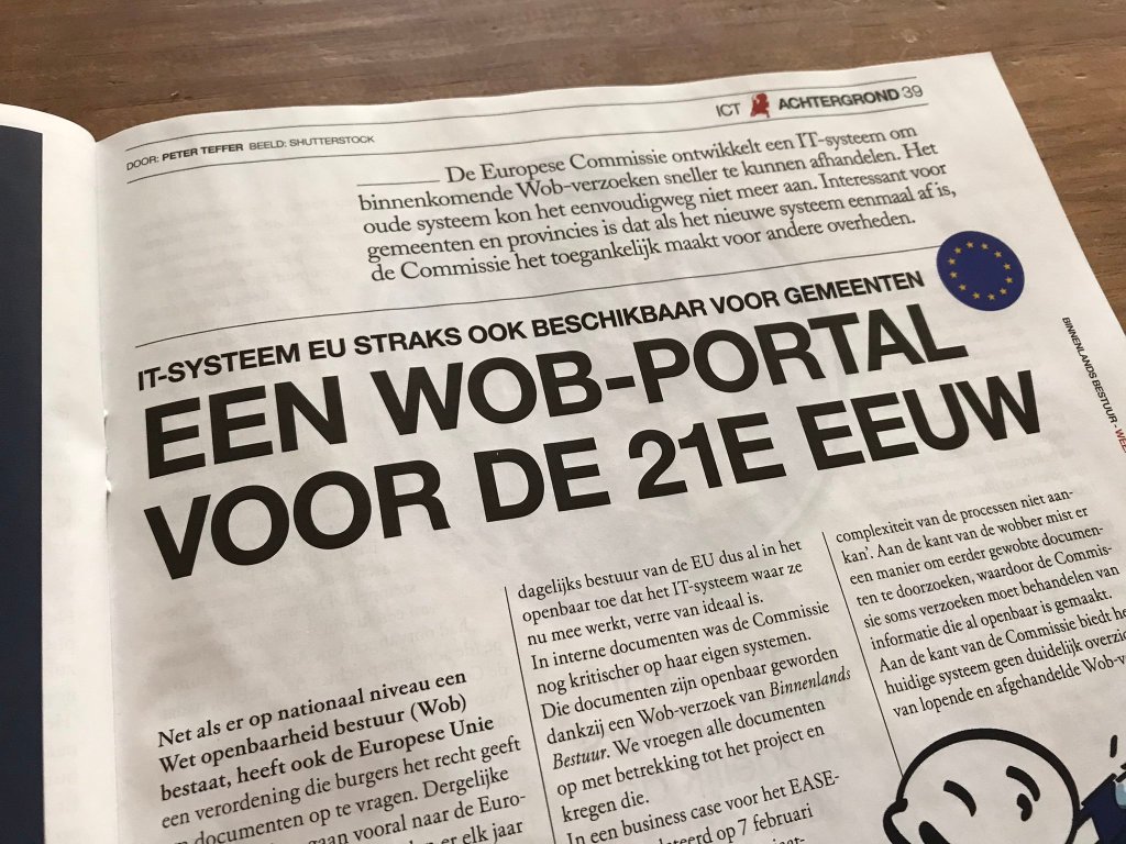 De Europese Commissie werkt aan een nieuw IT-systeem dat ervoor moet zorgen dat wob-verzoeken sneller worden afgehandeld. Ik schreef er een artikel over voor het magazine Binnenlands Bestuur. Een samenvatting van dat artikel staat op hun website.