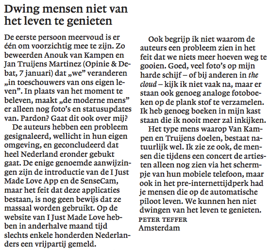 Het moest er maar eens van komen. Toen ik merkte dat ik de Spotify-reclames beter kon meezingen dan de muziek die ik luisterde, werd het toch echt tijd om een abonnement te nemen op de betaalde versie van de streaming-dienst. Natuurlijk, ik had Spotify onbetaald kunnen blijven gebruiken en het volume omlaag kunnen zetten elke keer als er een commercial langs kwam (nooit het volume helemaal uit doen, want dat wéét Spotify: bij mute wordt de reclame gepauzeerd tot je weer een paar streepjes volume hebt).